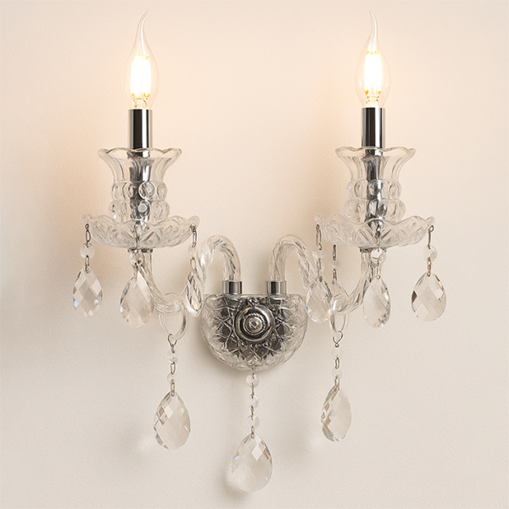 Añade un toque de elegancia clásica a tu hogar con esta lámpara de pared de cristal. Con dos luces estilo candelabro y detalles de cristal colgante, es ideal para iluminar cualquier espacio con un brillo sofisticado. Perfecta para salones, comedores o entradas, esta lámpara combina lujo y funcionalidad.