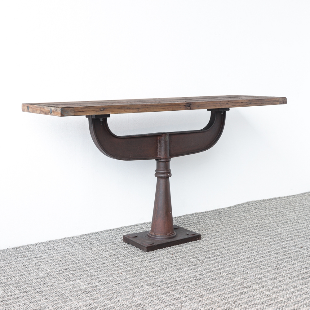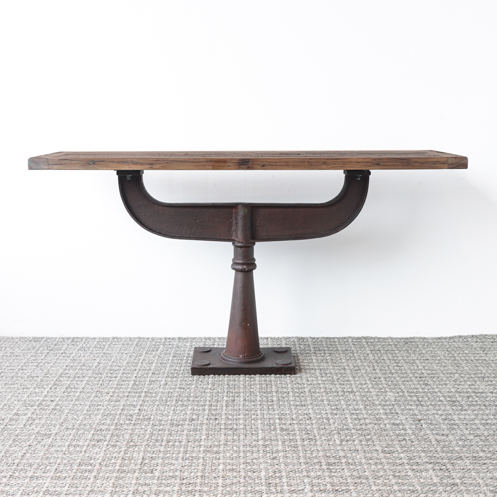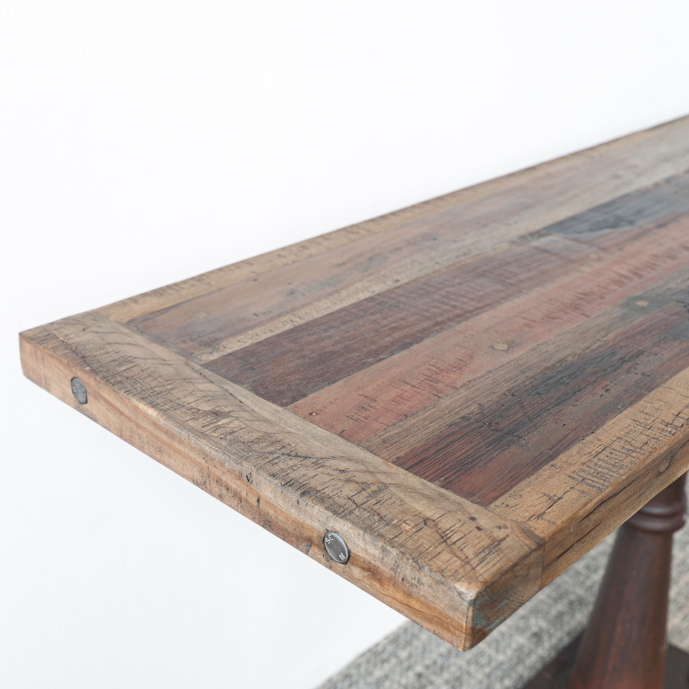 Esta mesa consola rústica es la combinación perfecta de arte y funcionalidad, cuenta con un tablero de madera sobre una base de hierro.