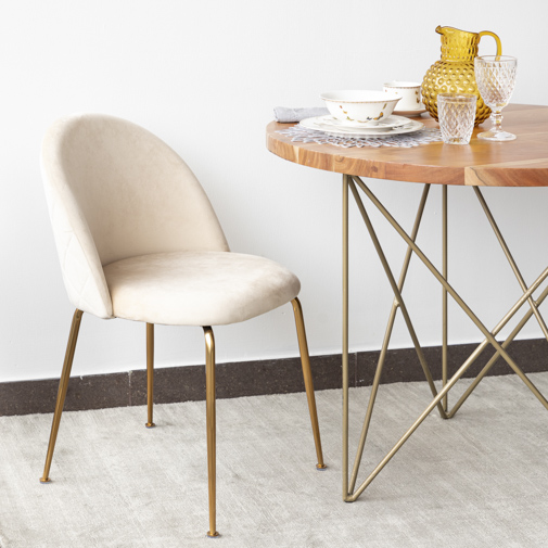 Nuestra silla Nova está hecha con tela velvet súper suave. Con patas cromadas y un respaldo texturizado con rombos. Ideal para tu comedor o estudio.