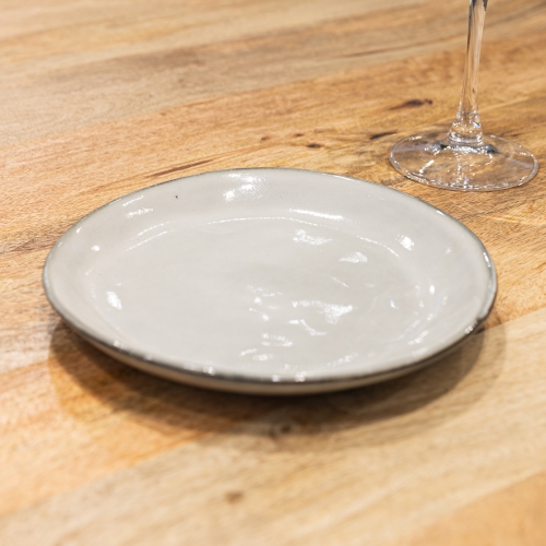 Plato principal blanco con orilla plateada de porcelana 30100175