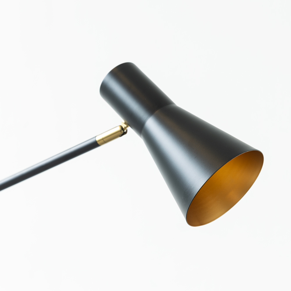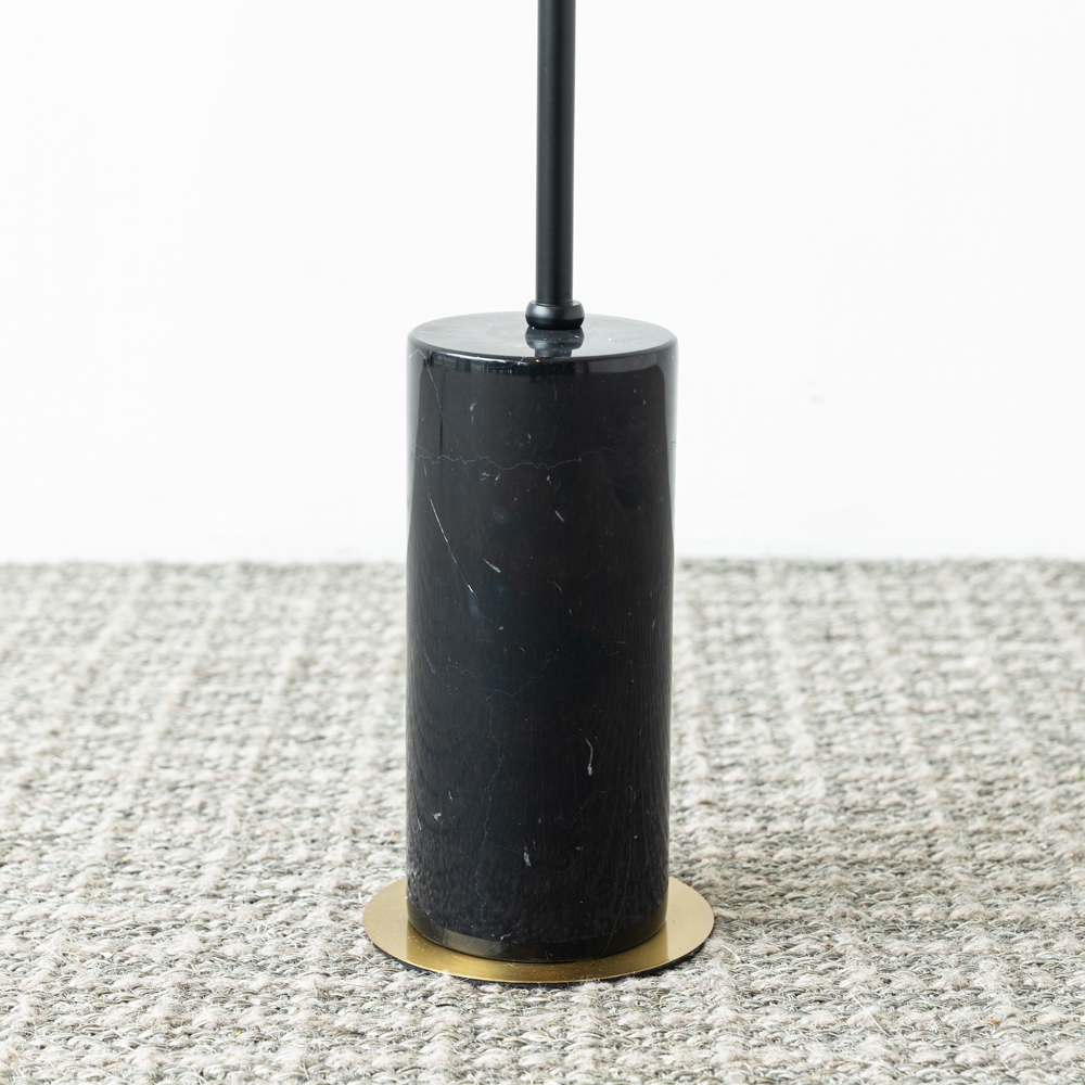 Esta lámpara de pie cuenta con un diseño moderno y sofisticado, con una base de mármol negro que aporta estabilidad y elegancia. Su brazo delgado y ajustable en color negro culmina en una pantalla cónica, ideal para iluminación focalizada. Perfecta para cualquier ambiente contemporáneo.
