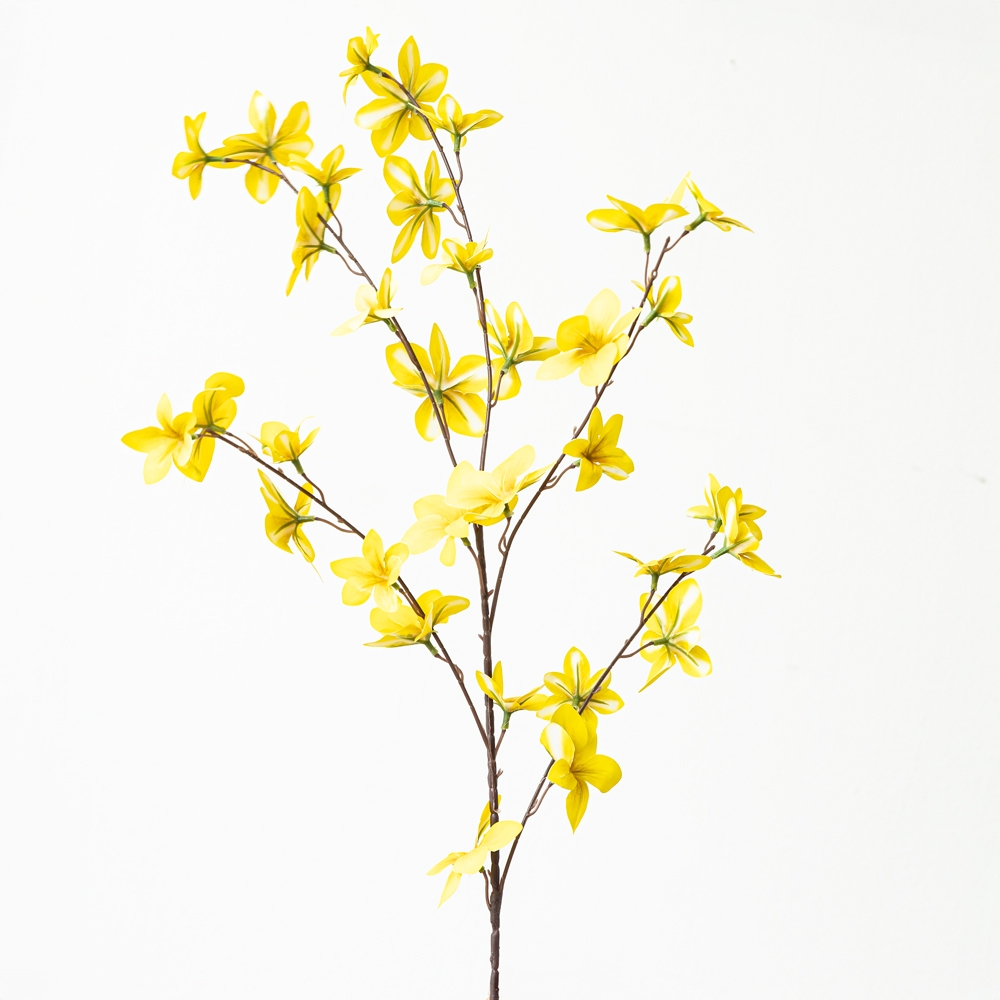 Rama artificial de forsythia en un vibrante tono amarillo, ideal para aportar energía y luminosidad a cualquier arreglo floral. Sus delicadas flores y ramas esbeltas ofrecen un acabado natural y lleno de movimiento. Perfecta para jarrones altos, decoraciones estacionales o composiciones modernas.