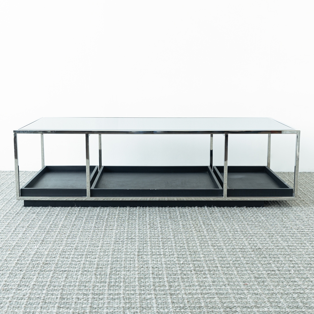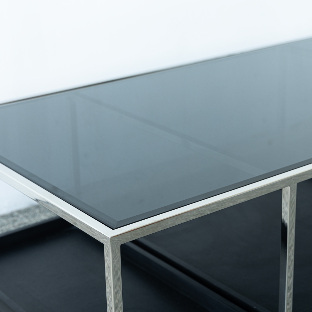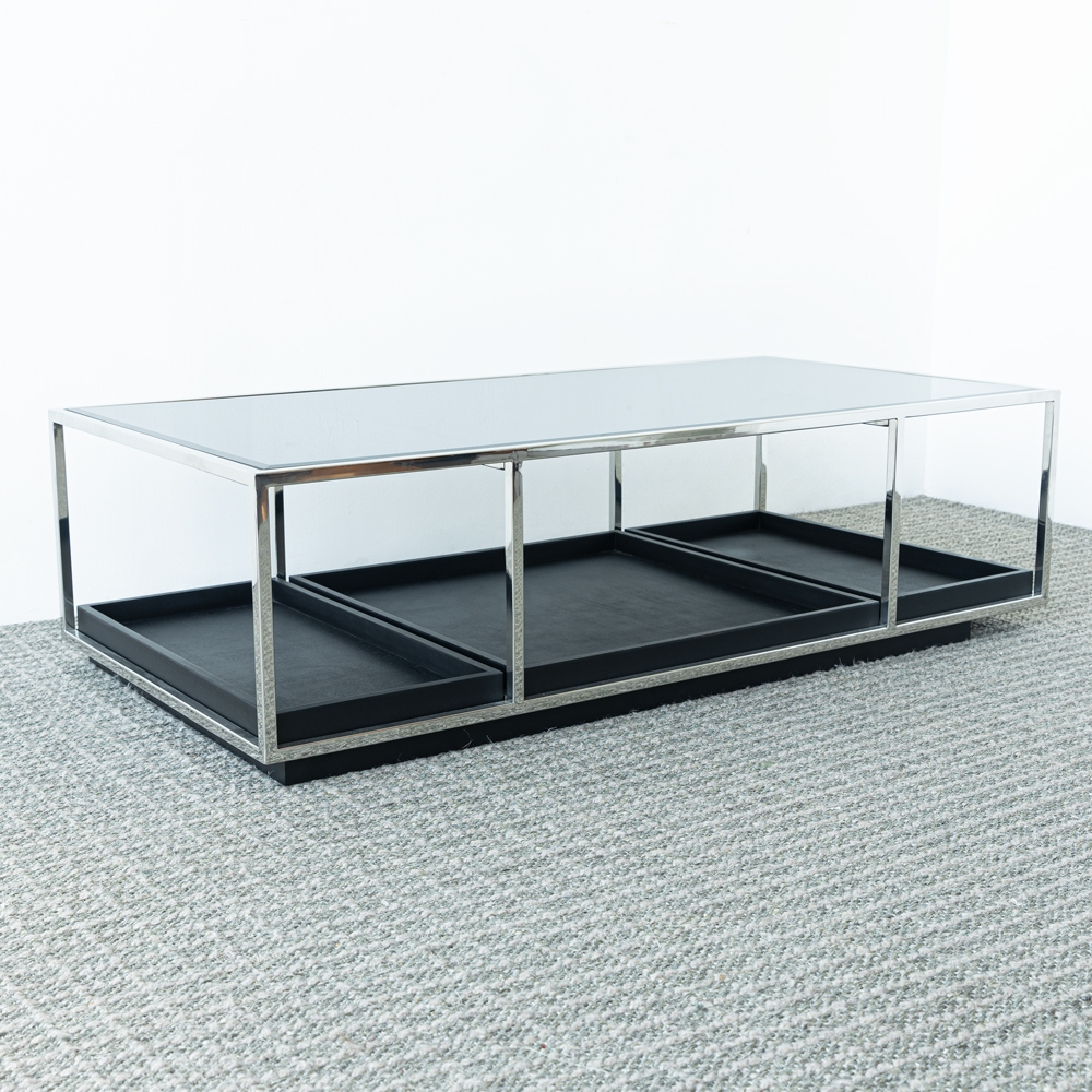 Esta mesa combina una estructura metálica cromada con cubierta de vidrio templado, creando un diseño moderno y ligero. Sus compartimentos inferiores ofrecen funcionalidad y estilo, ideales para organizar accesorios decorativos. Perfecta para dar un toque contemporáneo y elegante a tu sala.