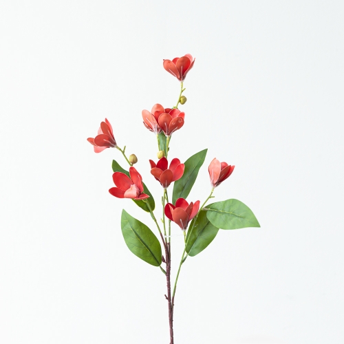 Rama decorativa artificial de eucalipto con hojas naranjas redondeadas. Aporta frescura y versatilidad en floreros, arreglos o centros de mesa. Un detalle natural y moderno para cualquier espacio.