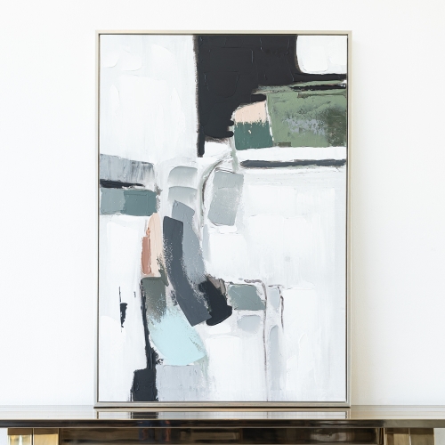 Cuadro abstracto en tonos neutros con pinceladas doradas y grises. Una pieza que transmite armonía y sofisticación con un estilo contemporáneo.