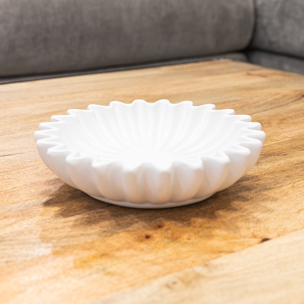 Bandeja decorativa con diseño ondulado. Su forma inspirada en la naturaleza y textura simétrica crean un efecto visual cautivador. Perfecto para dar un toque moderno y elegante a cualquier superficie.