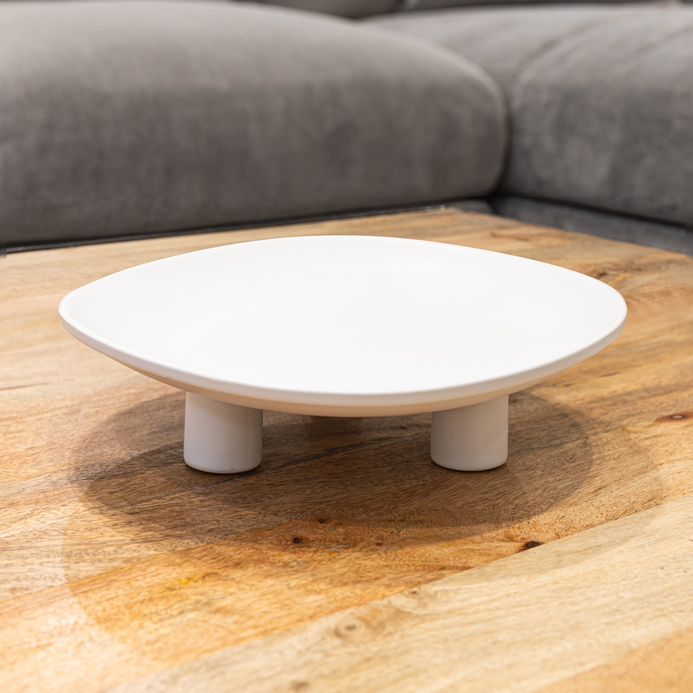 Minimalista y moderna, esta bandeja blanca con base de tres patas es ideal para centros de mesa o exhibición de objetos. Aporta estilo y equilibrio visual a cualquier espacio.