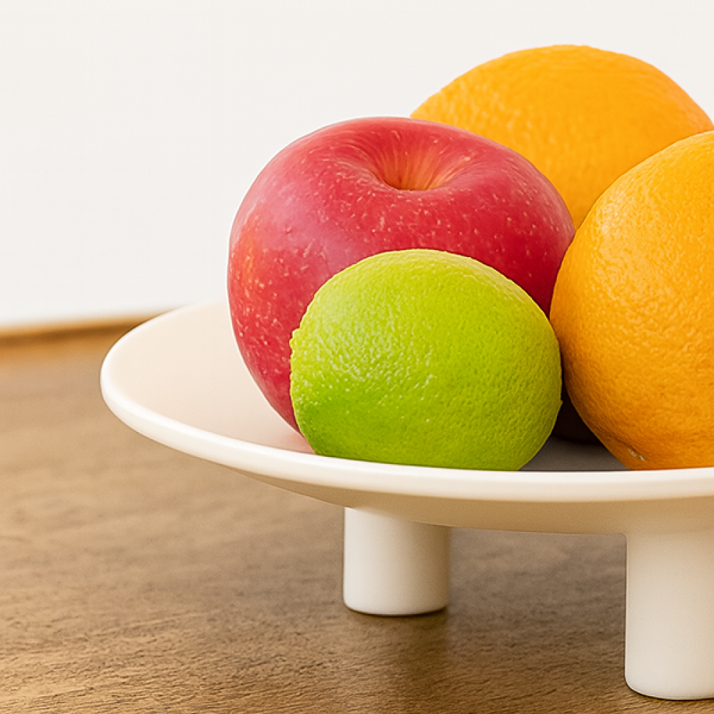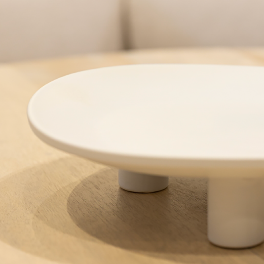 Minimalista y moderna, esta bandeja blanca con base de tres patas es ideal para centros de mesa o exhibición de objetos. Aporta estilo y equilibrio visual a cualquier espacio.