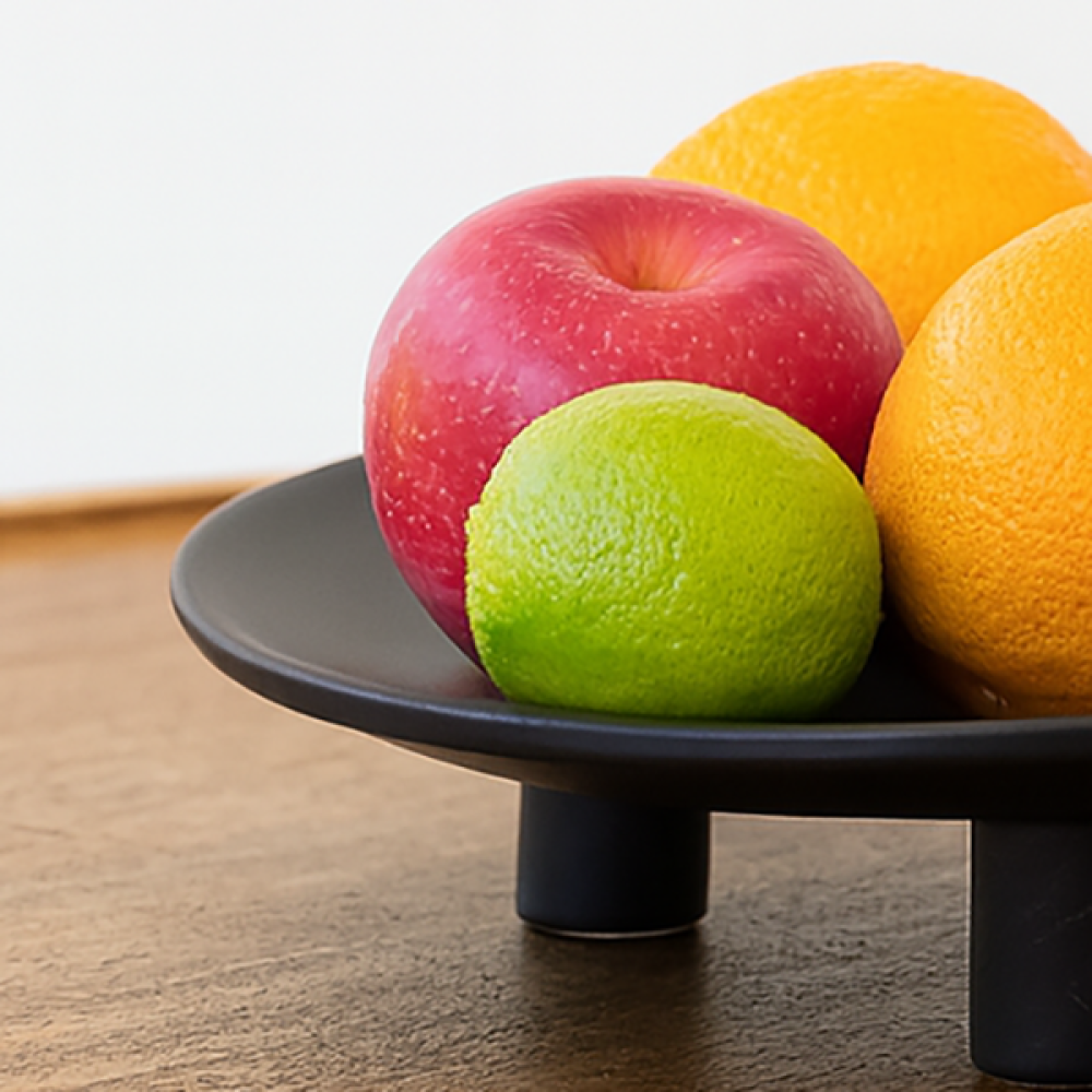 Minimalista y moderna, esta bandeja negra con base de tres patas es ideal para centros de mesa o exhibición de objetos. Aporta estilo y equilibrio visual a cualquier espacio