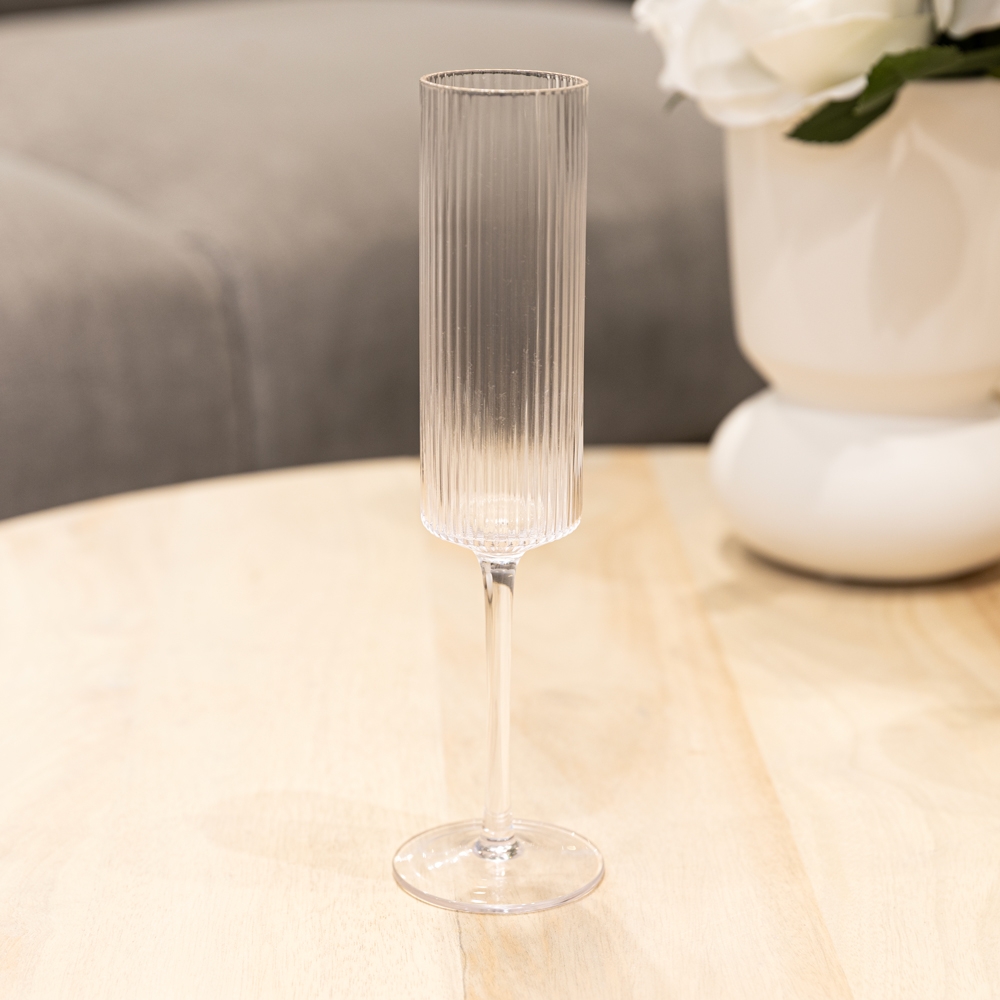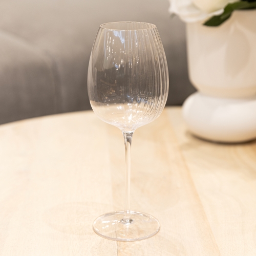 Con diseño acanalado y estilizada silueta, esta copa aporta elegancia contemporánea a la mesa. Ideal para vino o cocteles, realza cada brindis con un toque sofisticado.