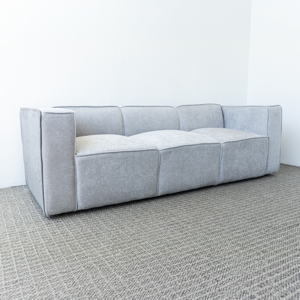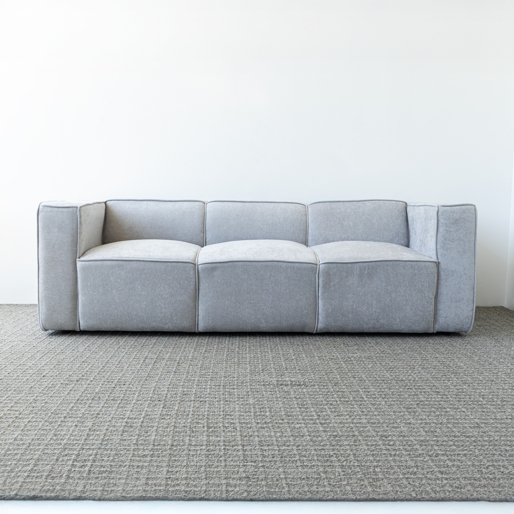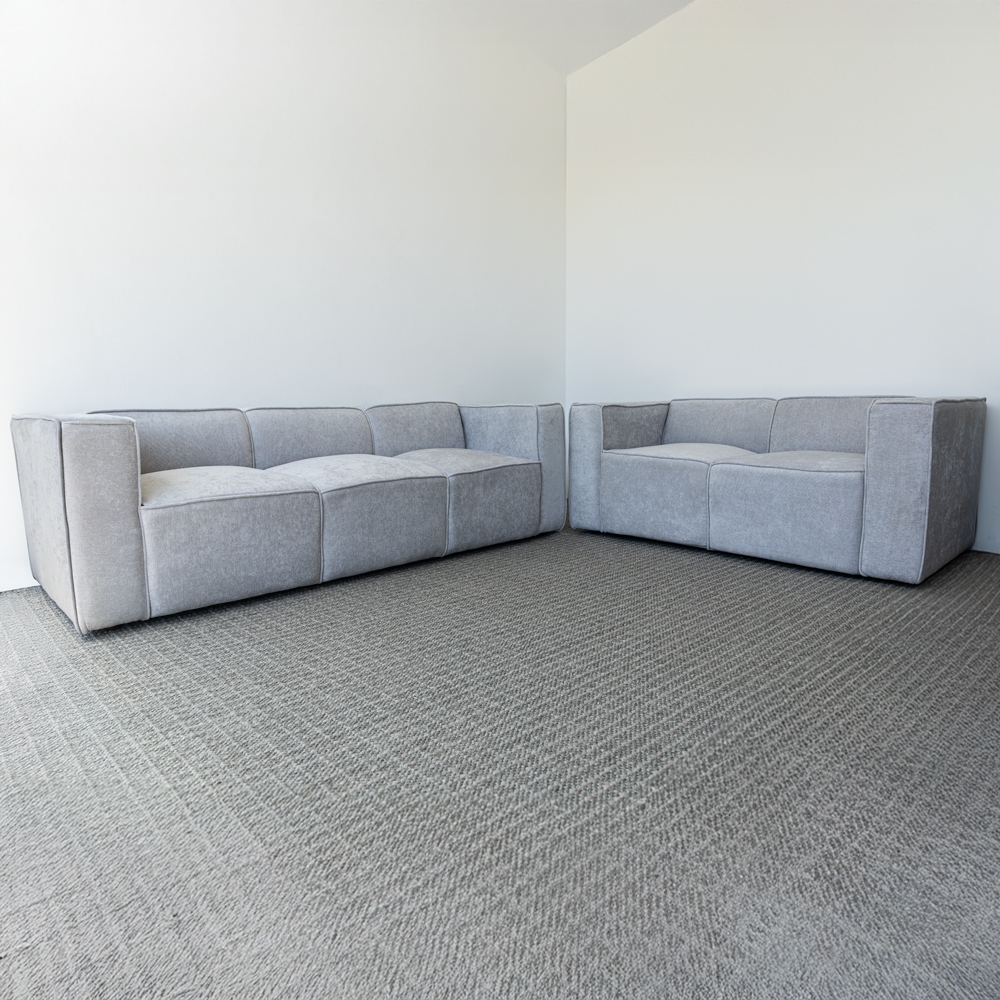 Combina comodidad envolvente con un diseño contemporáneo y minimalista. Tapizado en tela gris con acabado tornasol, sus líneas suaves y bloques amplios lo hacen ideal para espacios modernos que buscan estilo sin sacrificar confort. Perfecto para salas, estudios o espacios abiertos.