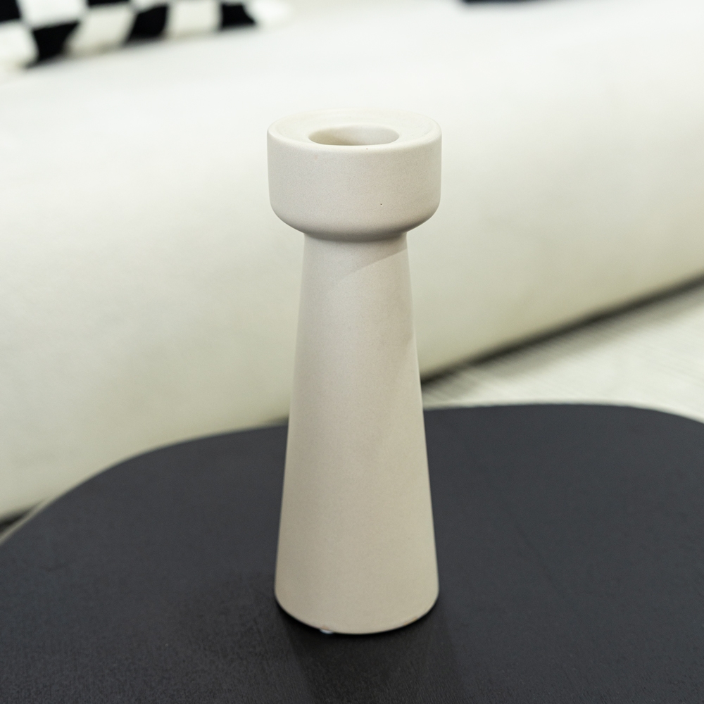 Candelero de diseño minimalista en tono beige mate, con una silueta cónica elegante y moderna. Ideal para añadir un toque sofisticado y cálido a cualquier espacio.