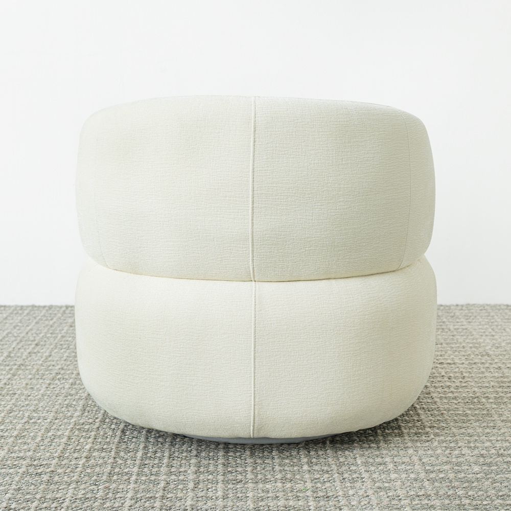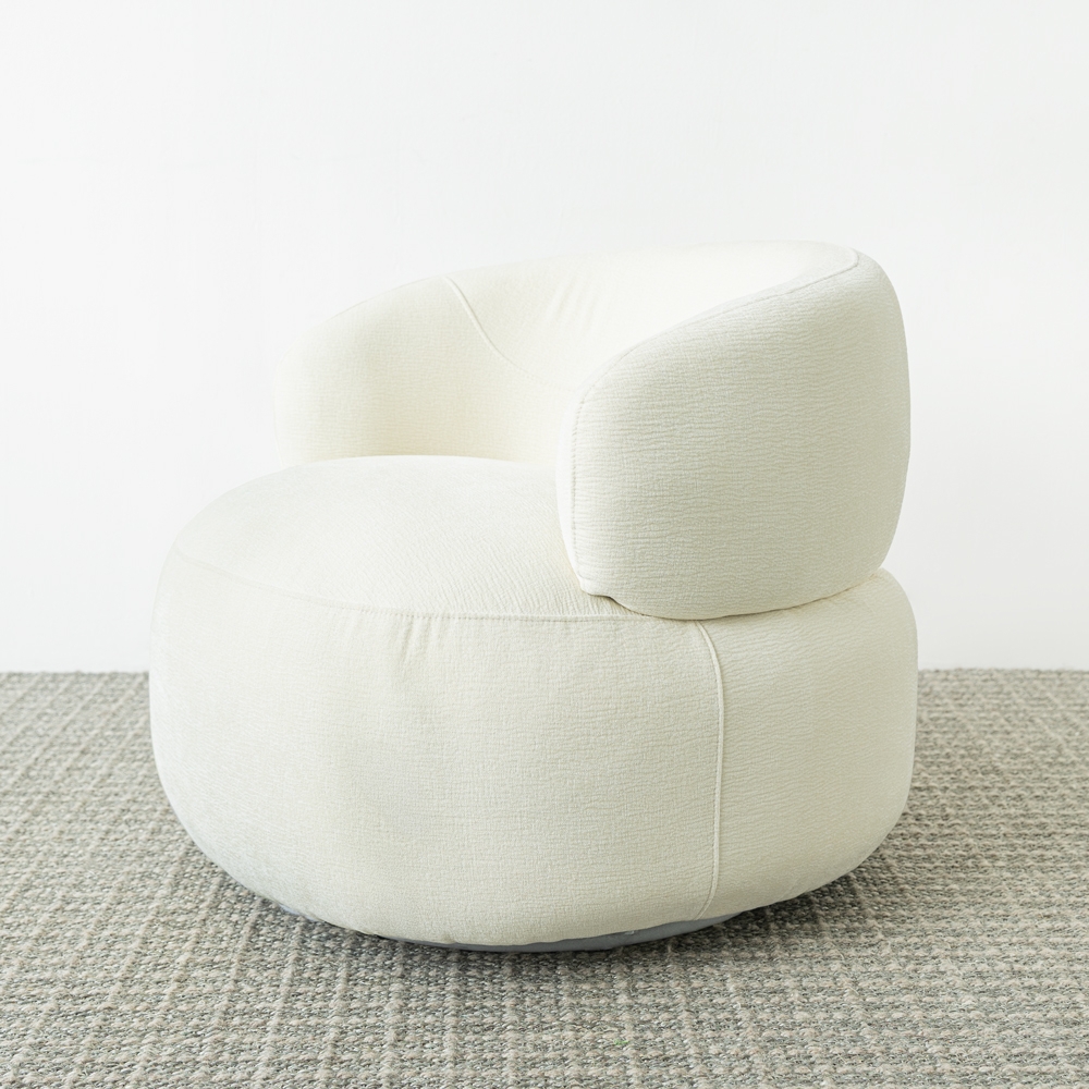 Con su diseño redondeado y tapizado en tono marfil, brinda una sensación de suavidad y confort absoluto. Perfecto para crear un rincón acogedor y moderno en tu sala.
