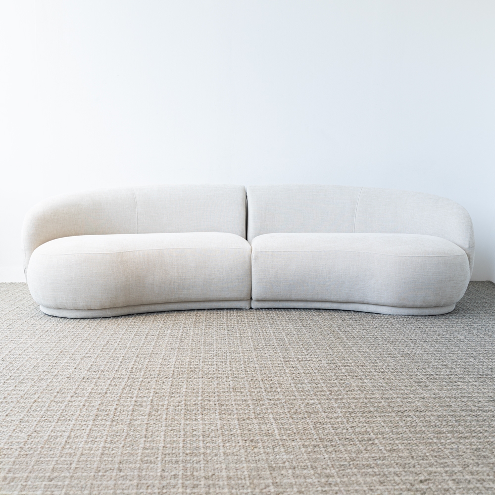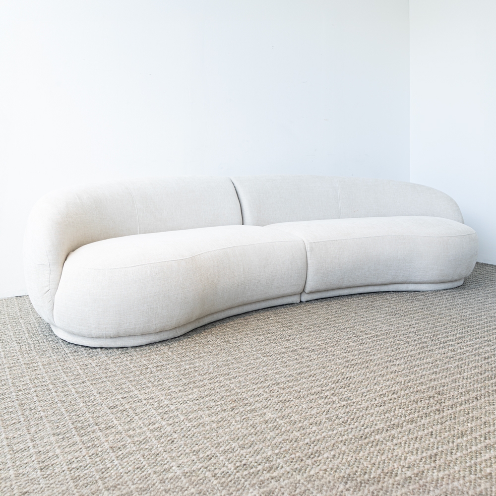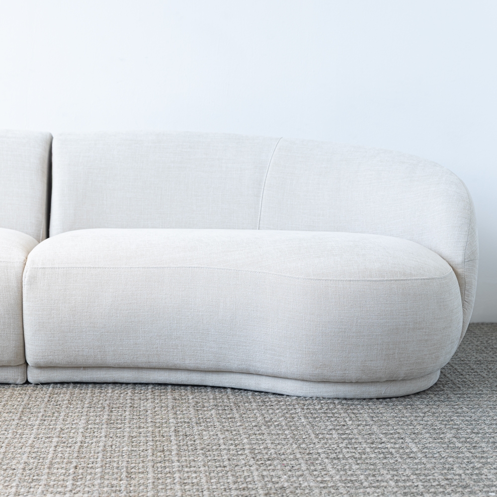 Combina formas suaves y elegancia moderna en un diseño que invita al confort. Su tapizado en tono claro aporta luminosidad y equilibrio a cualquier espacio.
