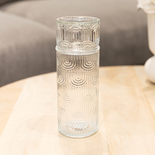 Copa de vidrio con delicado relieve vertical y borde dorado que añade un toque de lujo. Ideal para servir cocteles o champagne con elegancia y distinción.