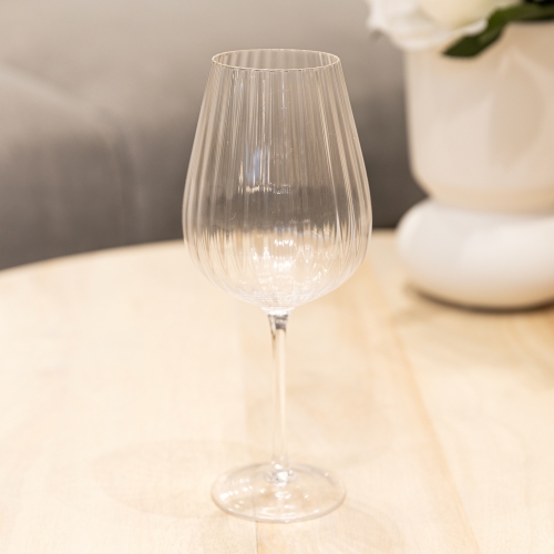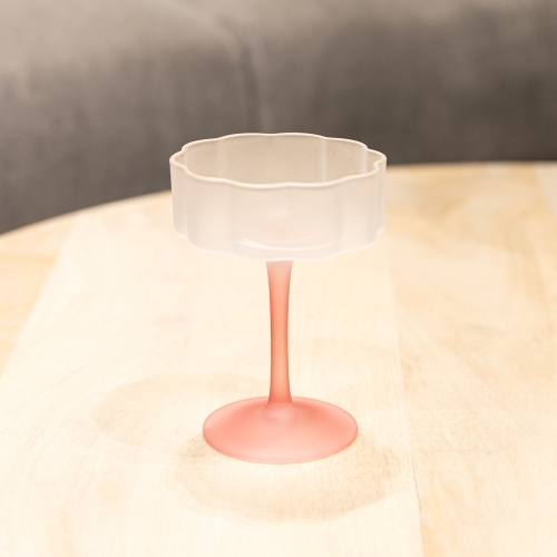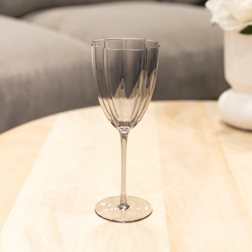 Copa de cristal azul con borde ondulado que evoca la forma de una flor en plena apertura. Su diseño artístico y moderno aporta un toque de color y distinción a cualquier mesa o brindis.