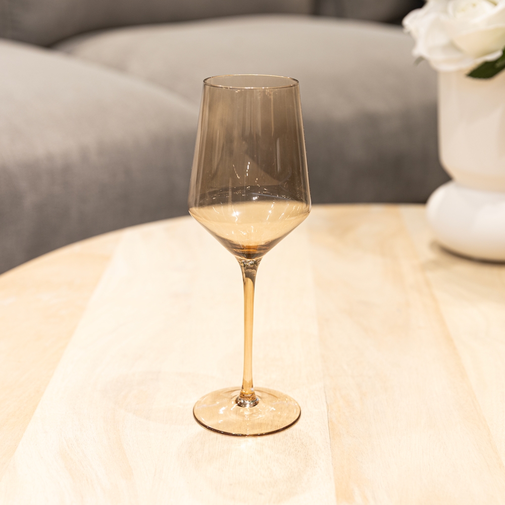 Con un delicado tono ámbar y silueta contemporánea, esta copa combina calidez y elegancia. Ideal para disfrutar tu vino con estilo y sofisticación moderna.