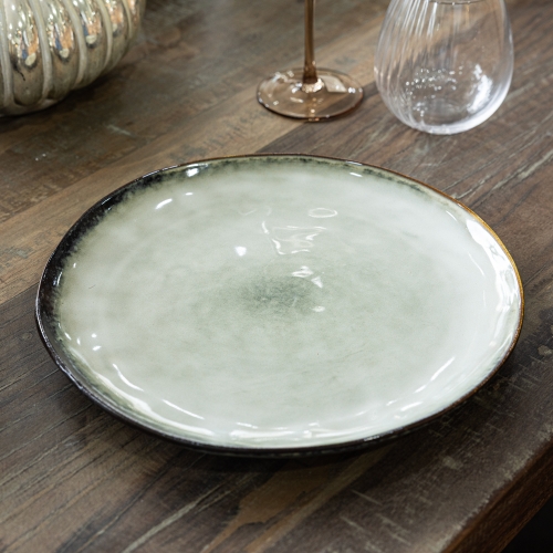 De forma orgánica y acabado artesanal en tono marfil con borde oscuro, este plato cerámico aporta un estilo natural y elegante. Ideal para sopas, pastas o ensaladas, combina funcionalidad y diseño contemporáneo.