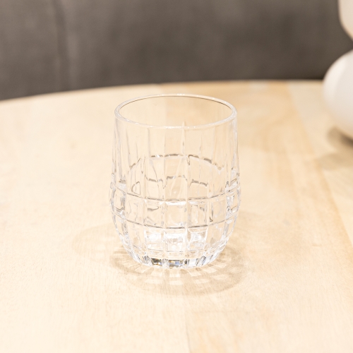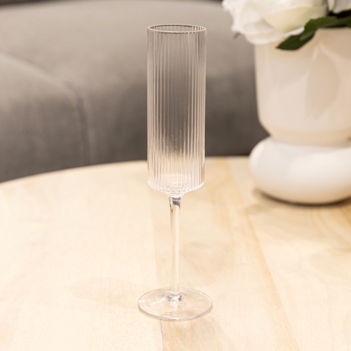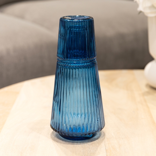 Conjunto de cristal acanalado que combina funcionalidad y estilo. Ideal para la mesa de noche o escritorio, aporta un toque elegante y práctico al día a día.