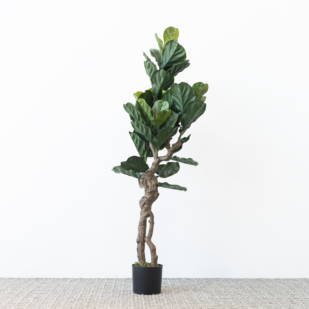 Planta artificial tipo Fiddle Leaf con tronco retorcido y hojas amplias de acabado natural. Aporta presencia y textura a cualquier espacio gracias a su diseño realista y elegante. Perfecta para interiores que buscan un toque verde sin necesidad de mantenimiento.