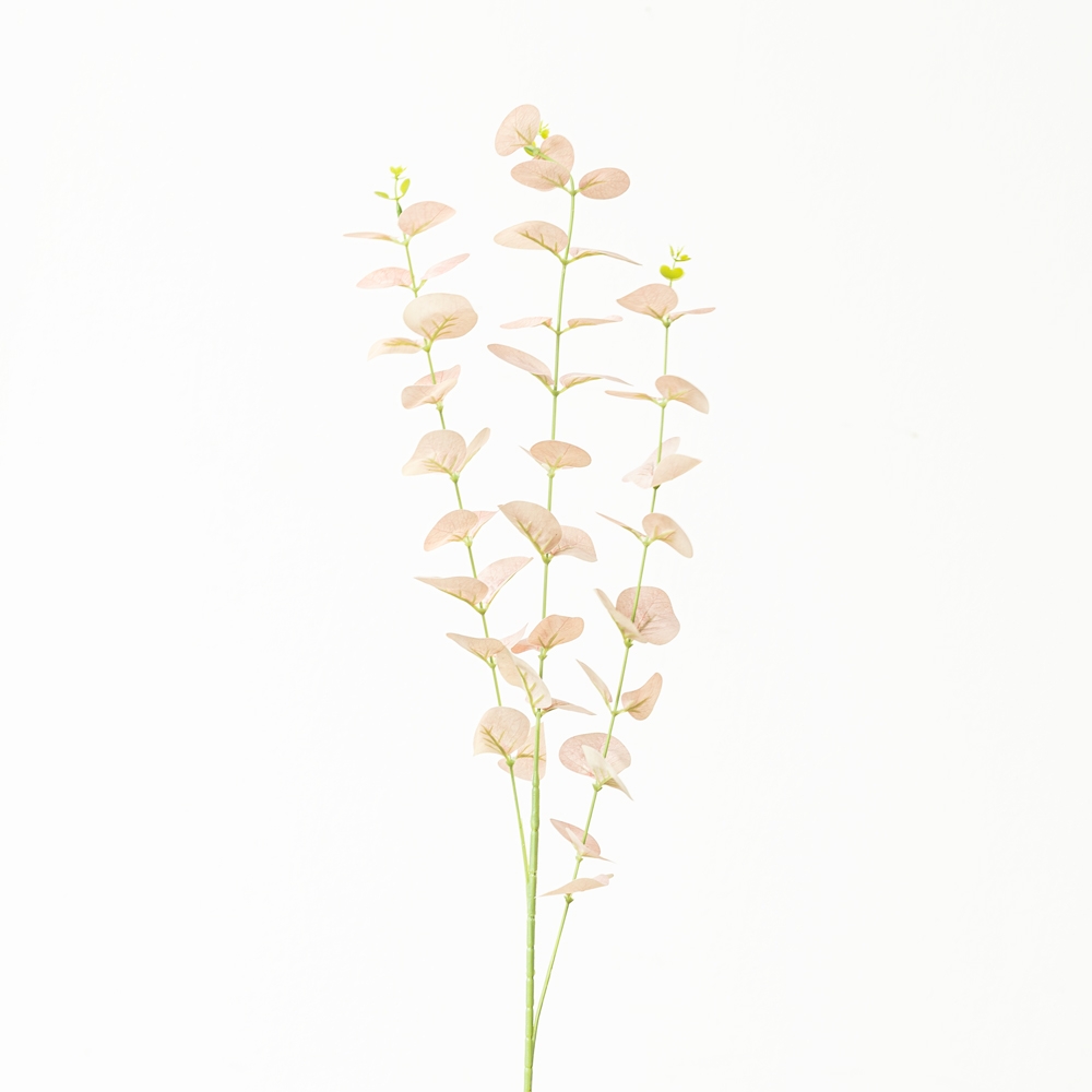 Rama artificial de eucalipto en tono rosa pálido, ideal para aportar suavidad y un toque delicado a cualquier arreglo decorativo. Sus hojas redondeadas y brotes sutiles ofrecen un aspecto natural y elegante. Perfecta para jarrones, centros de mesa o composiciones florales de estilo moderno y minimalista.