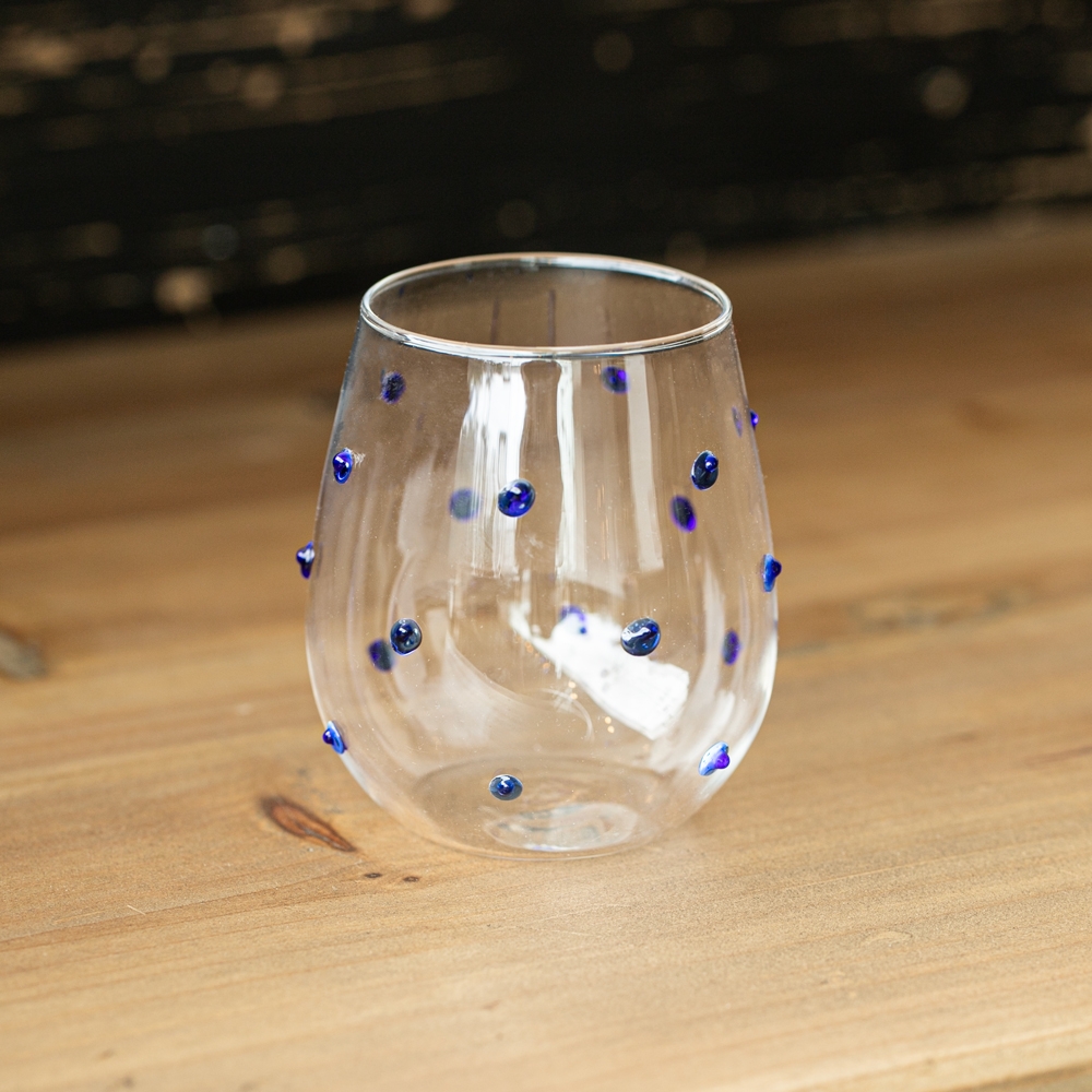 Sutil y moderno, este vaso destaca por sus delicados puntos azules en relieve. Perfecto para dar un toque divertido y elegante a tus bebidas cotidianas o reuniones especiales.