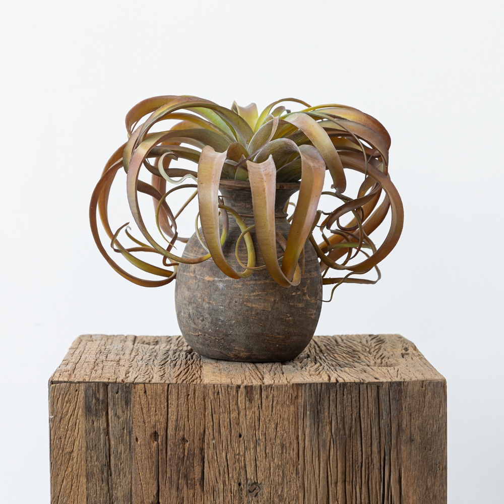 Tillandsia artificial de hojas rizadas en tonos marrón-verdosos que aportan un aspecto exótico y escultural. Su forma dinámica añade textura y movimiento a cualquier espacio decorativo. Perfecta para dar un toque natural y llamativo sin necesidad de mantenimiento.