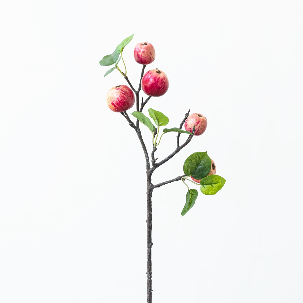 Rama decorativa de manzano artificial con frutos rojos realistas y hojas verdes detalladas.