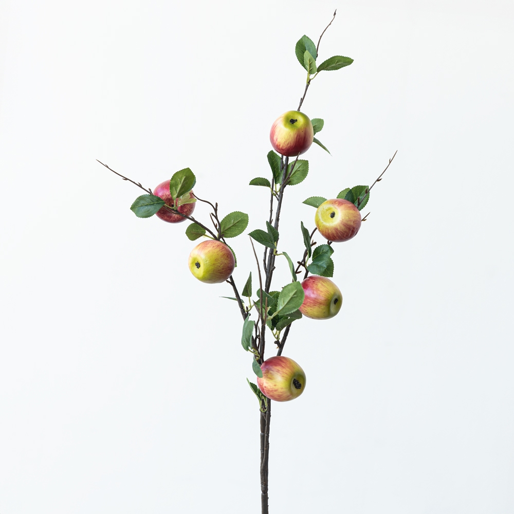 Rama artificial de manzano con manzanas realistas en tonos rojos y verde suave, ideal para dar un toque cálido y natural a cualquier espacio. Sus hojas detalladas y acabado premium aportan frescura sin necesidad de mantenimiento. Perfecta para jarrones, arreglos decorativos o centros de mesa.