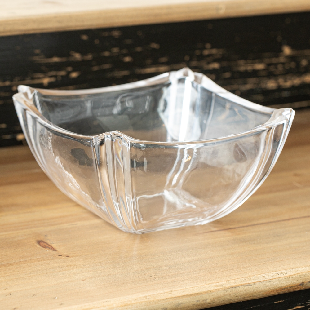 Elegante y versátil bowl de vidrio con diseño moderno y bordes elevados. Ideal para decorar con frutas, flores o velas. Su estilo elegante complementa cualquier ambiente.