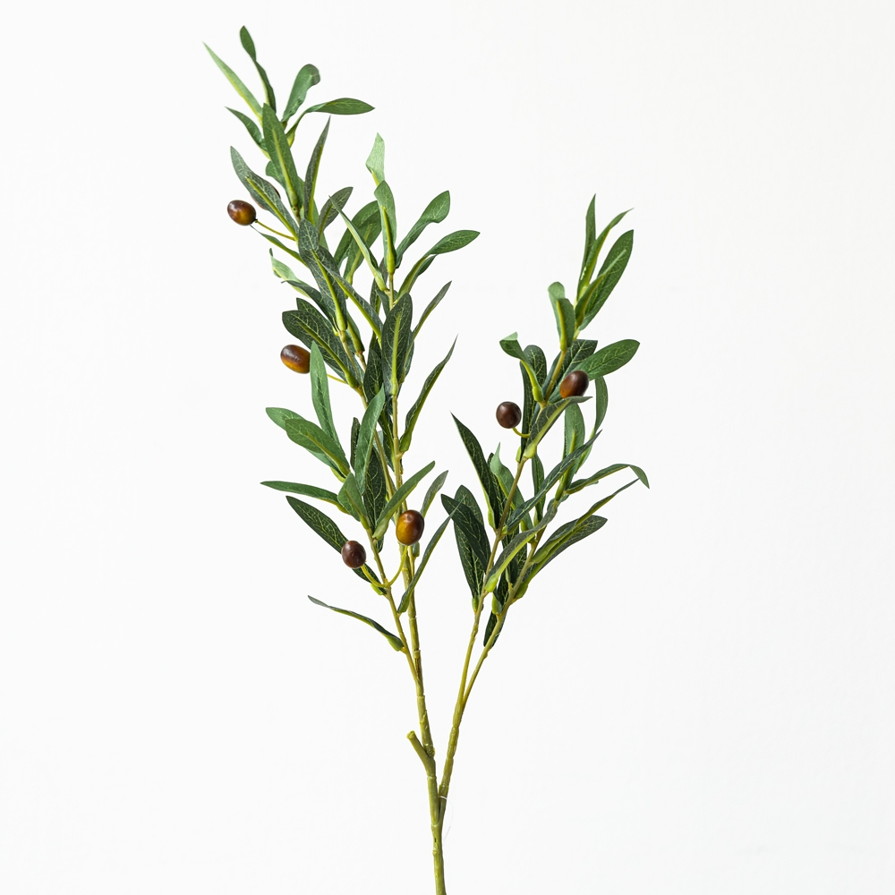 Rama artificial de olivo con hojas alargadas en tono verde profundo y pequeñas aceitunas decorativas, ideal para aportar un toque mediterráneo a tus espacios. Su diseño realista y elegante la hace perfecta para jarrones, centros de mesa o composiciones naturales. Una pieza versátil que añade frescura y carácter a la decoración.