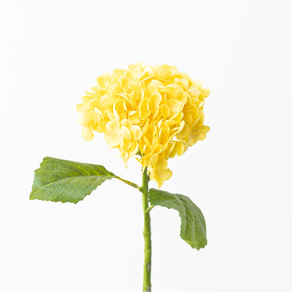 Hortensia artificial en un delicado tono amarillo, con pétalos detallados y un acabado voluminoso que aporta elegancia y frescura. Ideal para floreros altos, arreglos decorativos y ambientes refinados. Perfecta para añadir un toque floral sin mantenimiento.
