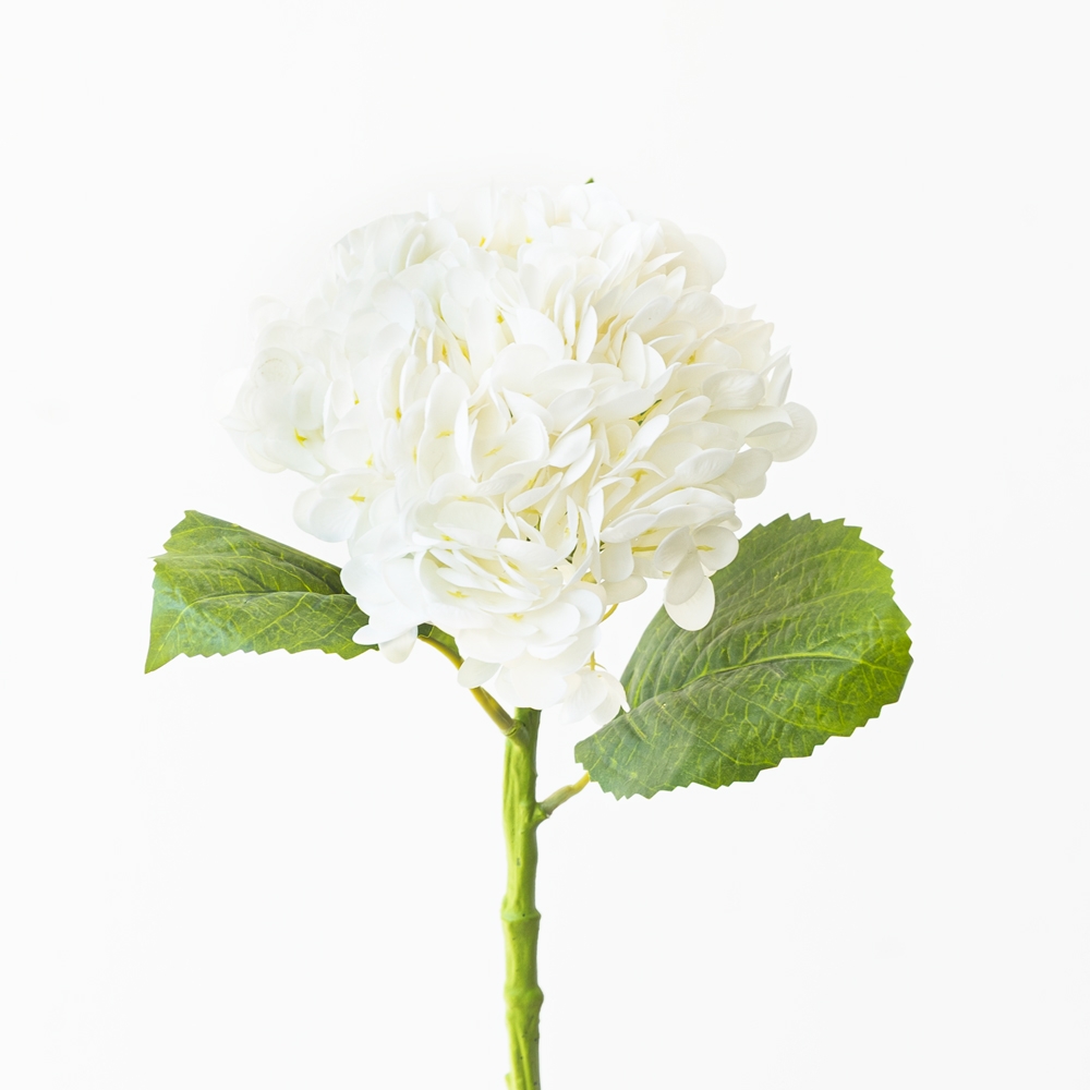 Hortensia artificial en un delicado tono blanco, con pétalos detallados y un acabado voluminoso que aporta elegancia y frescura. Ideal para floreros altos, arreglos decorativos y ambientes refinados. Perfecta para añadir un toque floral sin mantenimiento.