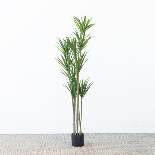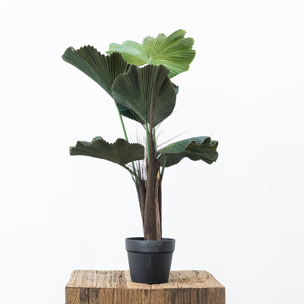Palma artificial tipo abanico con hojas amplias y texturizadas que aportan un toque tropical elegante. Su base de tallos fibrosos añade realismo y presencia decorativa en cualquier espacio. Perfecta para dar frescura y carácter sin necesidad de mantenimiento.