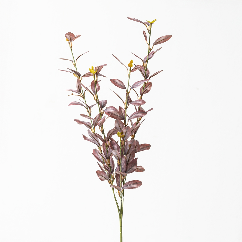 Rama artificial decorativa con hojas delgadas en tonos vino y detalles verdes que aportan un contraste sutil y natural. Su diseño estilizado la hace ideal para arreglos florales, jarrones o composiciones modernas. Una pieza versátil que añade color, textura y elegancia a cualquier espacio.