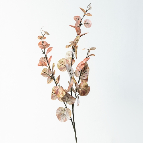 Rama artificial de eucalipto en tono dorado, perfecta para añadir un toque cálido y natural a cualquier espacio. Su acabado suave y luminoso aporta elegancia sin esfuerzo, ideal para jarrones, arreglos o centros de mesa. Una pieza versátil que complementa estilos modernos, rústicos o minimalistas.