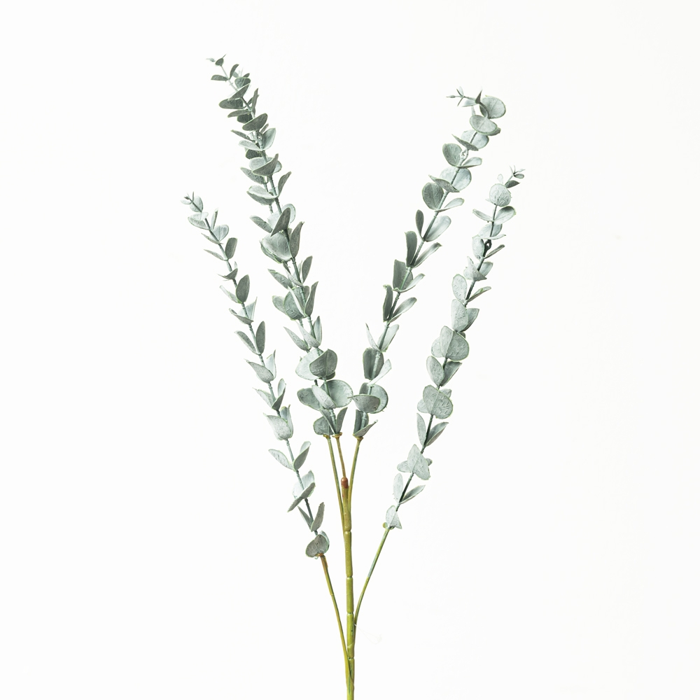 Rama artificial de eucalipto en tono verde grisáceo, perfecta para aportar un estilo fresco y elegante a cualquier arreglo decorativo. Sus ramas delgadas y hojas pequeñas crean una apariencia natural y delicada. Ideal para jarrones, centros de mesa o composiciones minimalistas.