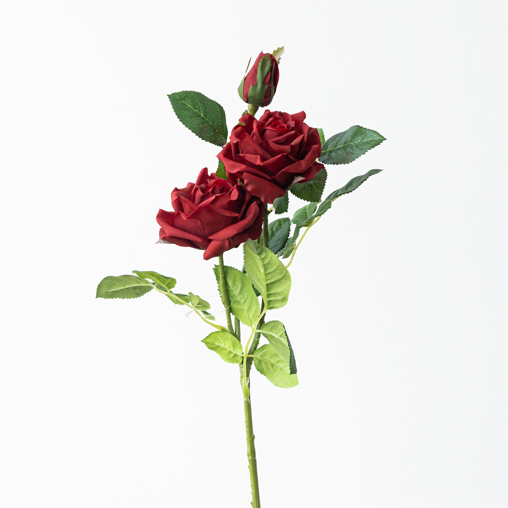 Tallo de rosas artificiales en tono corinto ofrece flores delicadas y realistas, perfectas para añadir suavidad y elegancia a cualquier espacio. Sus pétalos detallados y follaje natural aportan un aspecto fresco y romántico. Ideal para arreglos florales que buscan estilo sin mantenimiento.