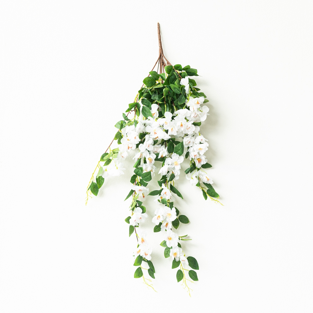 Guirnalda artificial con delicadas flores blancas y hojas verdes, perfecta para crear ambientes frescos y románticos. Su diseño cascada aporta movimiento y un acabado natural que destaca en paredes, entradas, eventos o arreglos especiales. Una pieza versátil que ilumina y embellece cualquier espacio con sutileza.