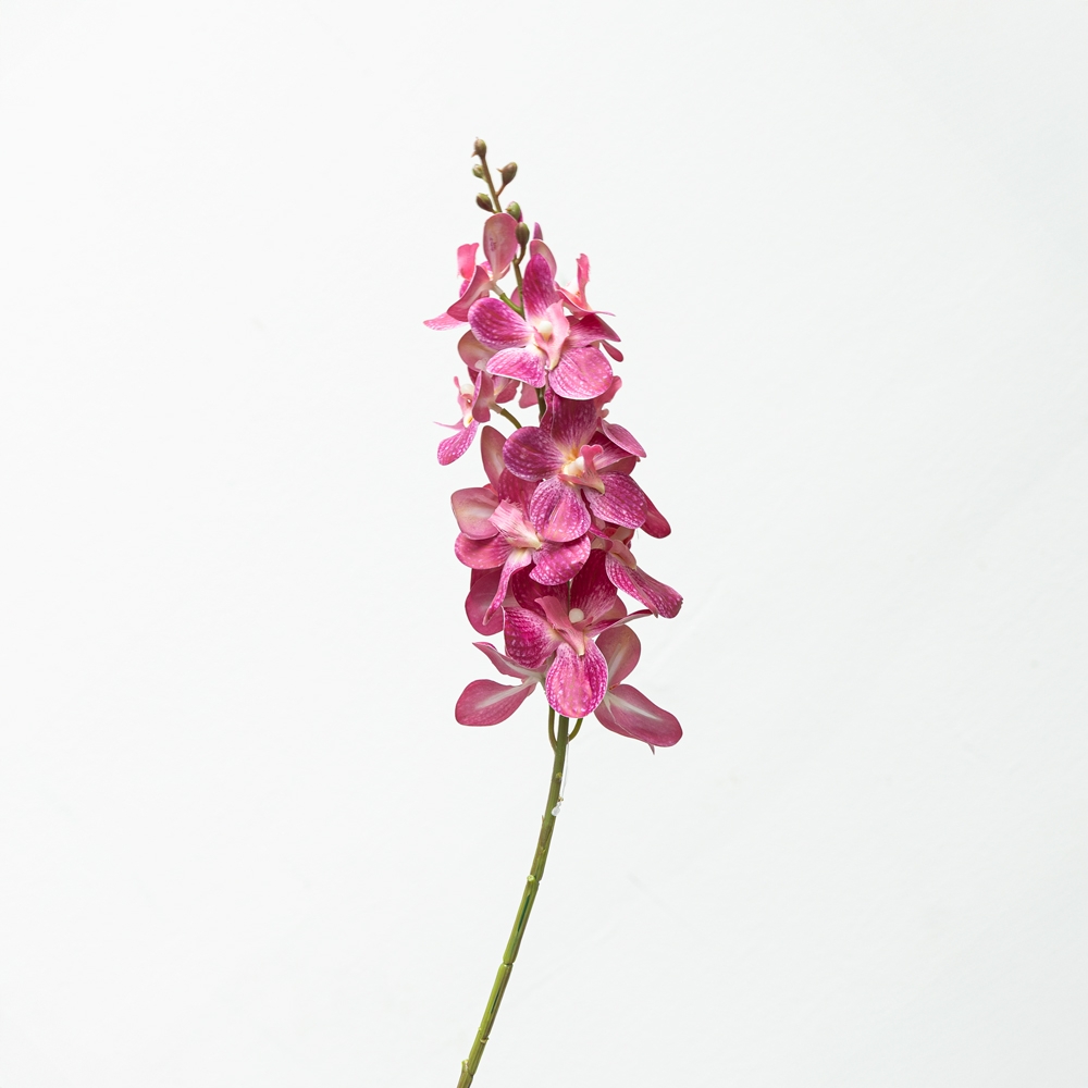 Rama decorativa tipo orquídea en tonos rosa intenso con delicados detalles en los pétalos. Su diseño estilizado y exótico aporta un toque elegante y moderno al ambiente. Ideal para decorar interiores o complementar arreglos con color y sofisticación.