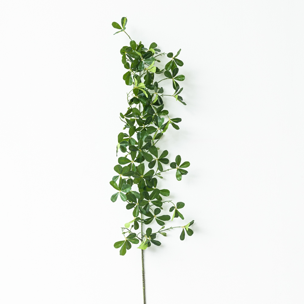 Planta decorativa artificial de follaje verde con diseño natural y estilizado. Hojas detalladas que aportan frescura y vida al espacio sin mantenimiento. Ideal para muros, floreros altos o acentos decorativos interiores.
