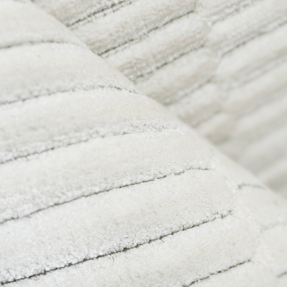 Alfombra en tono claro con textura en relieve que aporta profundidad y elegancia. Ideal para iluminar y dar amplitud a salas, dormitorios o espacios minimalistas. Un diseño sobrio y moderno que combina fácilmente con distintos estilos.