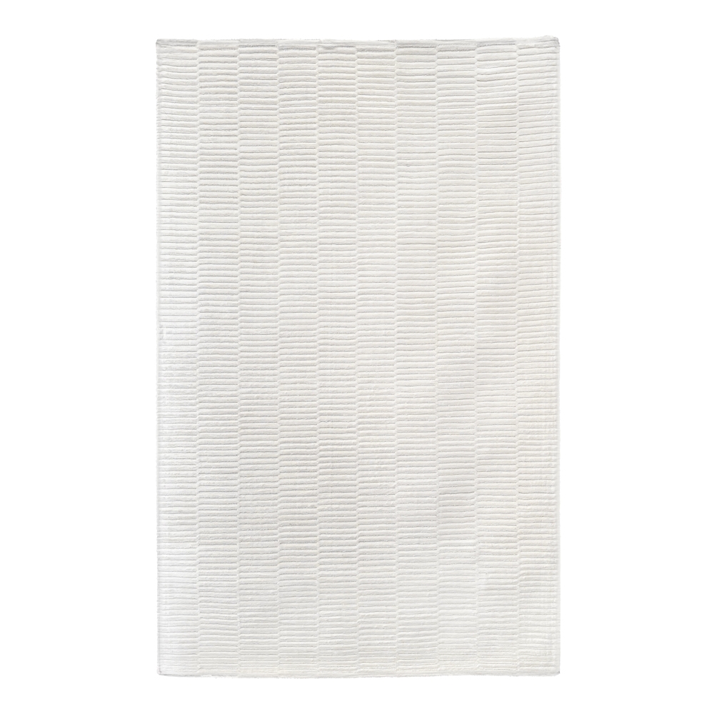 Alfombra en tono claro con textura en relieve que aporta profundidad y elegancia. Ideal para iluminar y dar amplitud a salas, dormitorios o espacios minimalistas. Un diseño sobrio y moderno que combina fácilmente con distintos estilos.