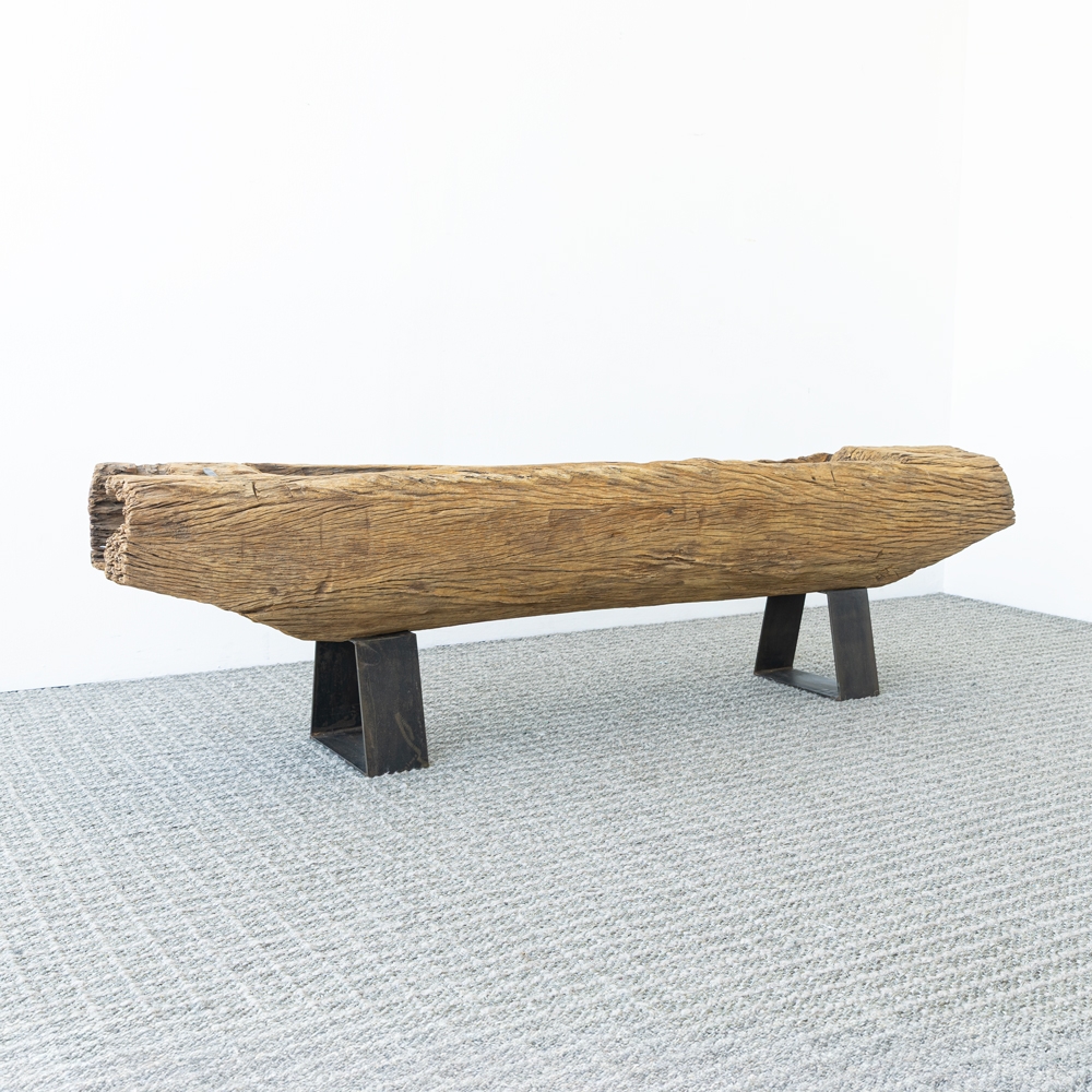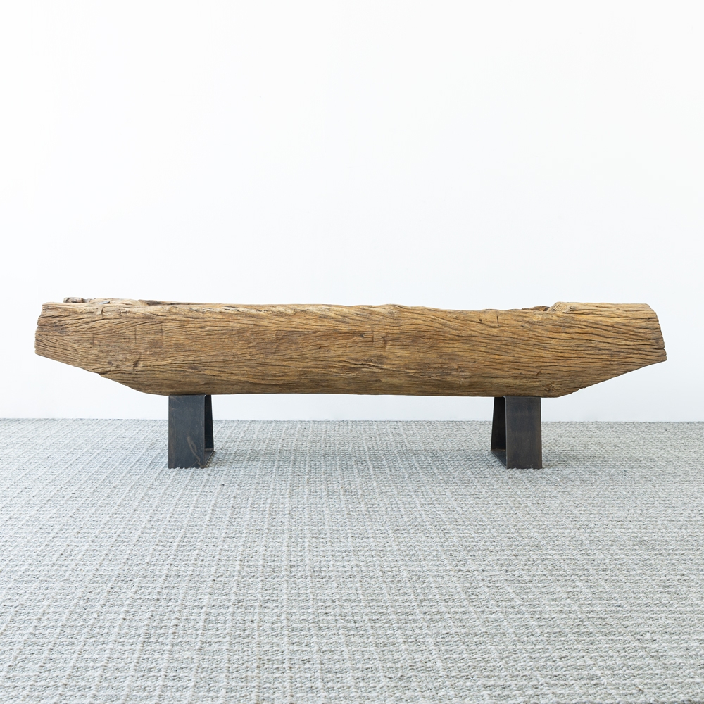 Macetero rústico elaborado a partir de un tronco de madera maciza con acabado natural. Su diseño orgánico resalta las vetas y formas únicas de la madera. Base metálica que aporta estabilidad y un contraste moderno.
