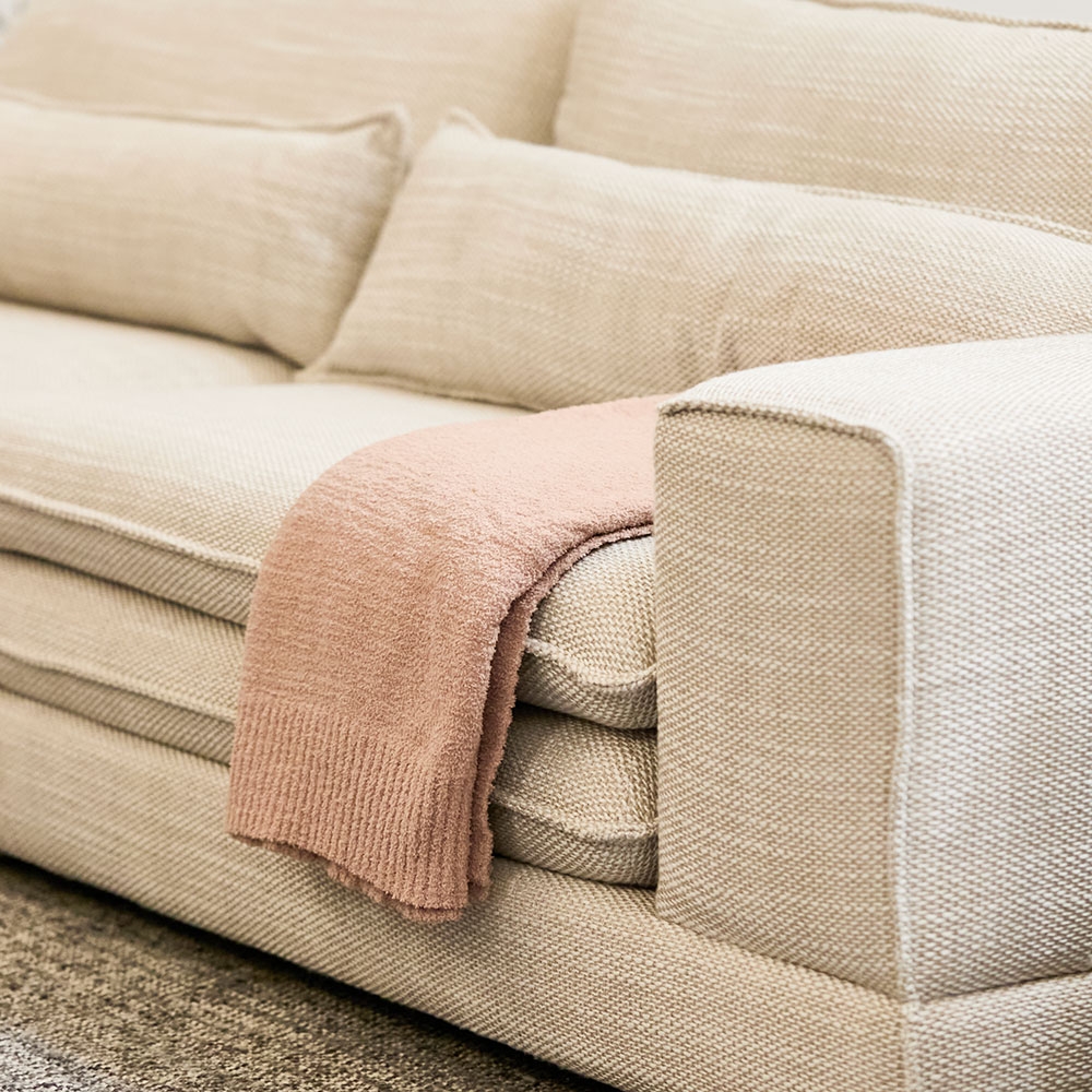 Sala modular en tono beige con diseño amplio y líneas suaves que invitan al descanso. Su tapizado de textura natural aporta calidez y elegancia atemporal al espacio. Ideal para crear ambientes acogedores y sofisticados en salas contemporáneas.