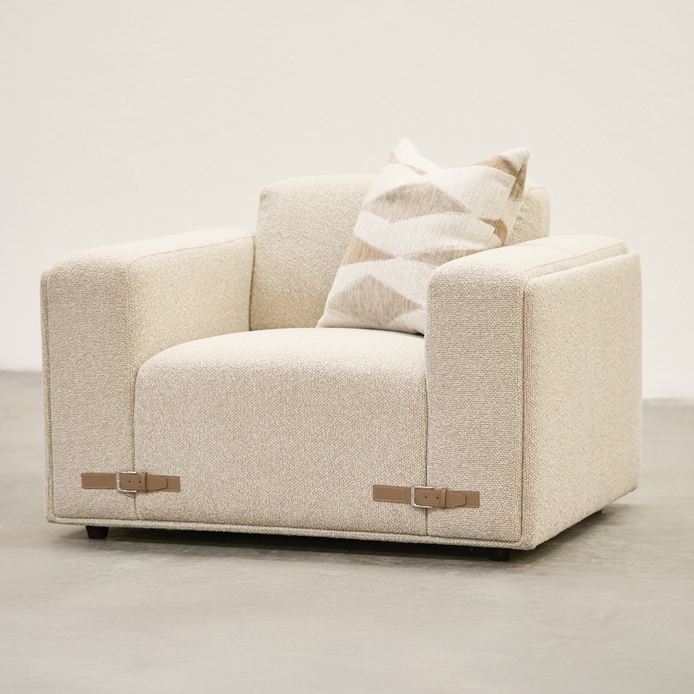 Sillón de líneas limpias y volumen generoso, tapizado en una textura suave y cálida. Su tono neutro ilumina el espacio y se adapta a cualquier estilo. Ideal para crear ambientes serenos, cómodos y atemporales.