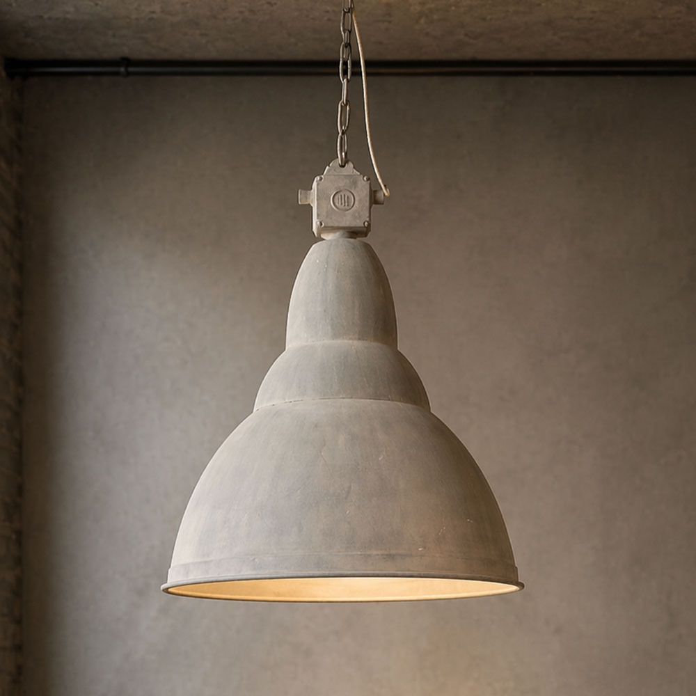 Lámpara colgante de estilo industrial con acabado envejecido en tono neutro. Su diseño robusto y minimalista aporta carácter y autenticidad a cualquier espacio. Perfecta para ambientes modernos o tipo loft con estética urbana.