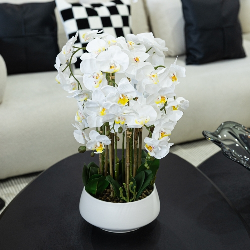 Descubre la elegancia de esta flor artificial, con pétalos blancos y un sutil toque rosado, ideal para cualquier espacio. Su diseño realista y vibrante aporta frescura y belleza duradera. Perfecta para decorar tu hogar u oficina.